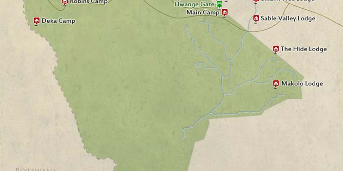 Hwange is situated in the far west of Zimbabwe along the border with Botswana. It lies roughly half way between the iconic Victoria Falls and Zimbabwe’s second-largest city Bulawayo, and is easily accessed from the main surfaced road that runs between them. Ecologically, Hwange differs from the rest of Zimbabwe in that it shares strong affinities with the sandy semi-arid Kalahari region of Botswana, and stands at the eastern limit of the range of many plant and animal species associated with that region.