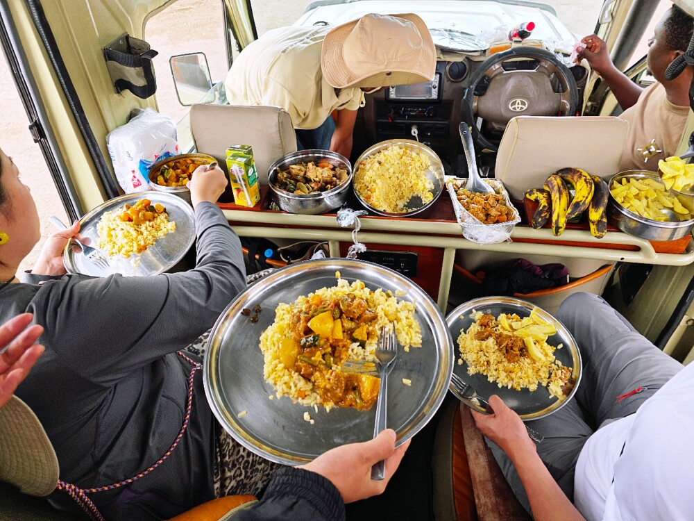 I saw us having a meal in the car because Serengeti was too vast to find a dining spot.