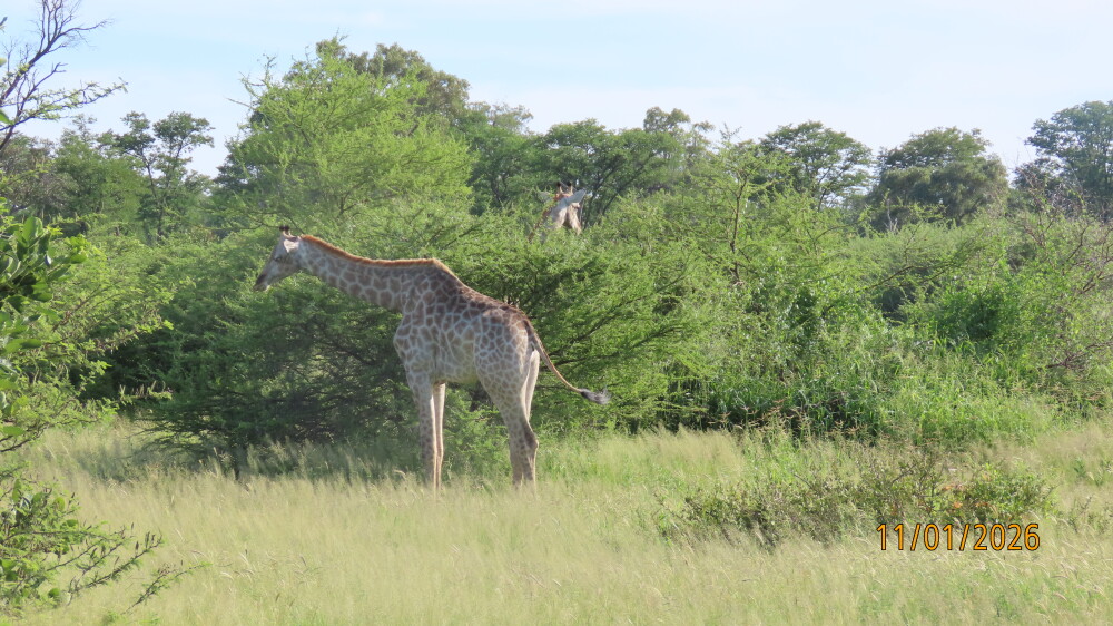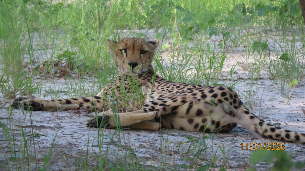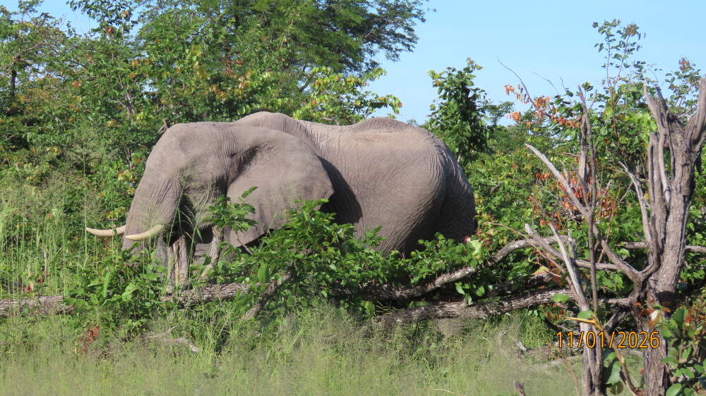We joined a 1-day safari to the Moremi Game Reserve from Maun. We were collected promptly from our hotel for the drive to the Moremi Game Reserve. Although we visited during the ‘wet’ season when the animals are dispersed, we were shown an excellent variety of both fauna and flora. The highlights for us were spotting a cheetah resting under a tree, 3 jackal cubs playing under a bush, a small herd of batchelor elephant bulls bullying a lone hippopotamus bull in a watering hole and African Painted Dogs. We also saw plenty of elephant, giraffe, buffalo, zebra, impala, waterbuck, red lechwe, baboon and numerous wild fowl.