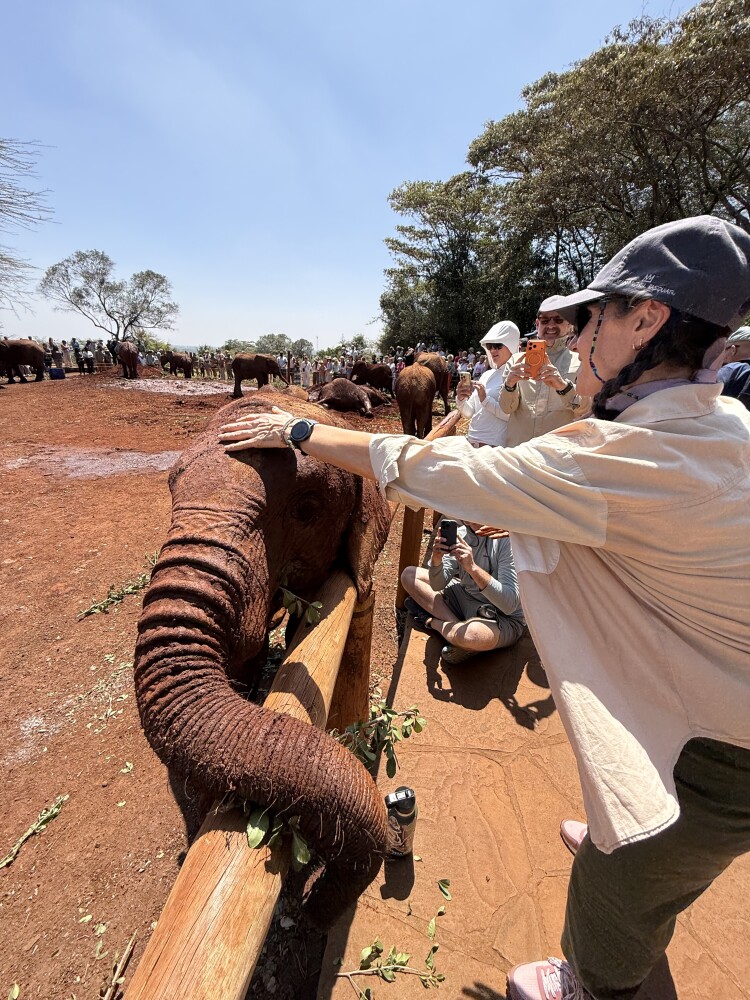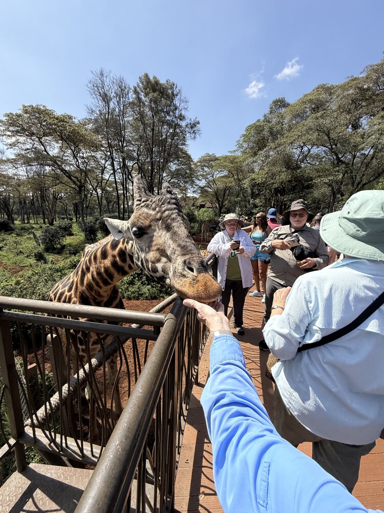 Our safari was planned as 11 days, five nights in three different national parks in Kenya and the same in Tanzania. Our group arrived a day early in Nairobi and Tapestry organized a day tour around Nairobi which included the Nairobi National Park; a visit to the Sheldrick Wildlife Trust which is world famous for their work with orphaned elephants and rhinos. We saw the feeding time for over 20 baby elephants, the one baby rhino and a lone baby zebra and we got to fed giraffes at the giraffe center.