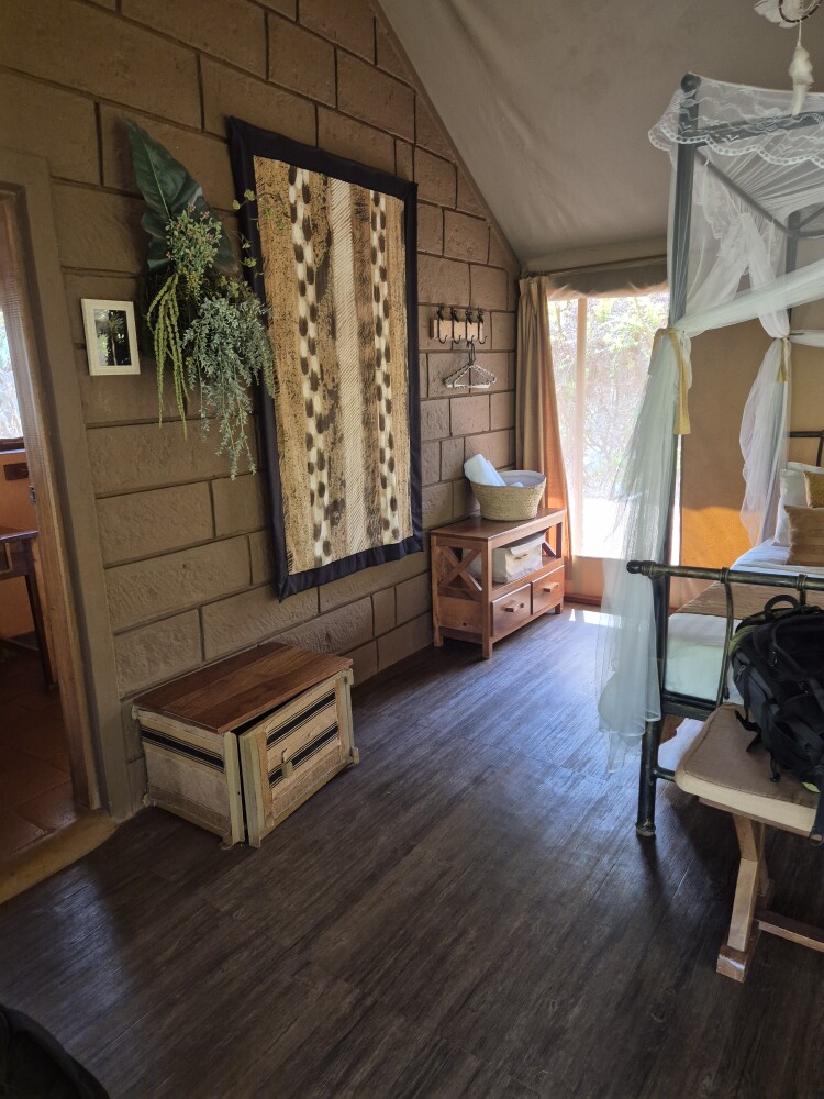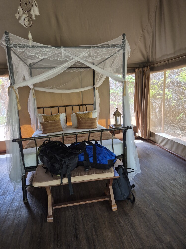 Accomodation was beautiful tent with everything needed, pool in camp and delicious food. We went for few hour long game drive in the afternoon/evening. We sadly didnt see many animals but the sunset was beautiful.