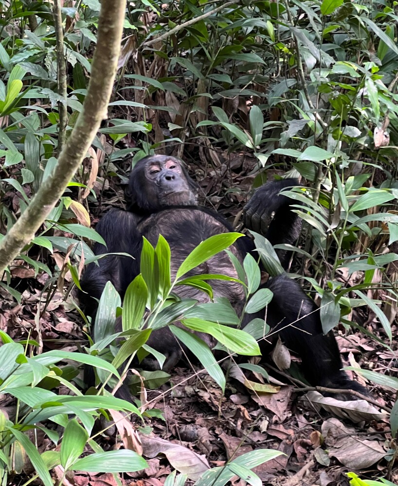 Chimpanzee trekking was another incredible experience, and patience truly paid off. While some groups left early, we were rewarded with an intimate encounter — within a meter of a calm male chimp resting with his hands behind his head, while others wandered nearby or groomed each other. It was beautiful, peaceful, and humbling.