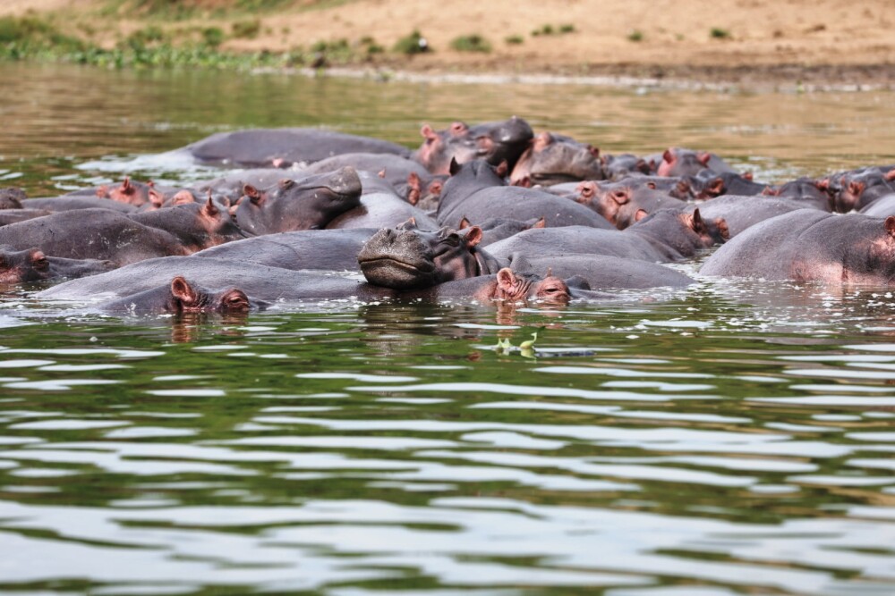 Murchison Falls took our breath away — especially at sunset. The next day on our boat safari, closely watching hippos and buffalo share the riverbank with a crocodile was a moment of pure magic.