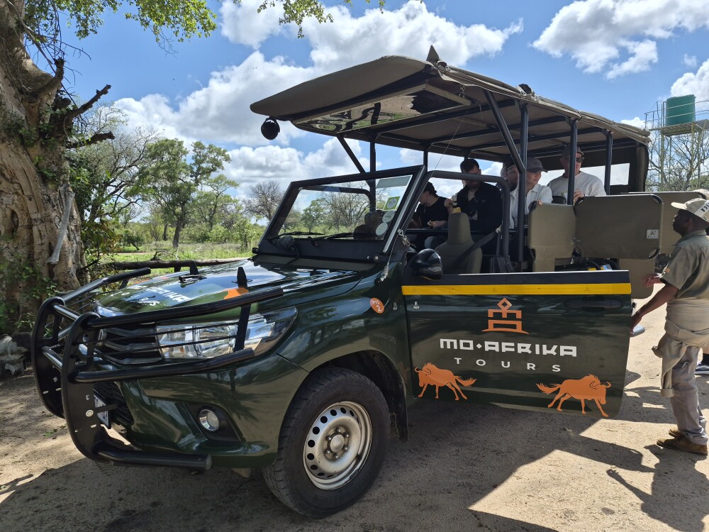 10 guests piled into the comfortable open sided safari vehicle for the drive to Kruger. Entry was simple & fast.