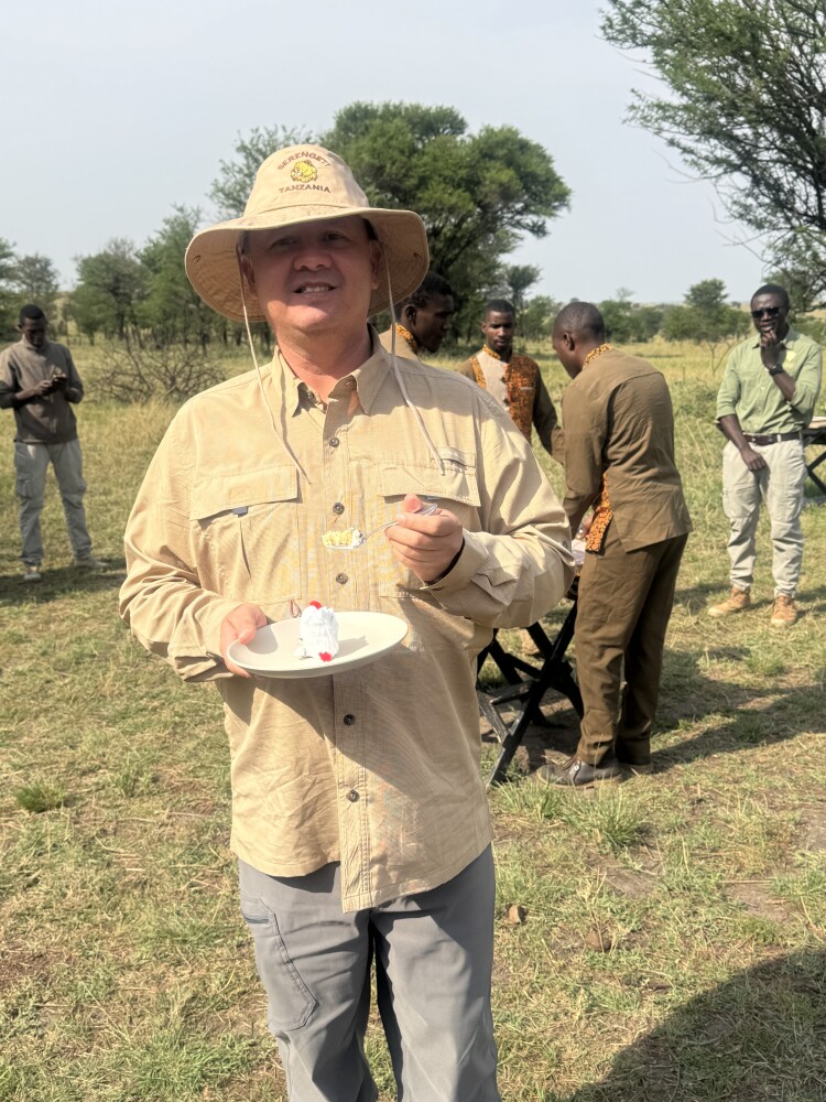 The next morning began with another amazing breakfast overlooking the lake, and then we headed to the Serengeti. We enjoyed another afternoon game drive and watched the sun set on our way to the lodge. This lodge was located inside the Serengeti, so at night we could hear lions and other wildlife, and nothing compares to waking up to see elephants right behind the lounge tent. After another beautiful game drive we continued to Ngorongoro.