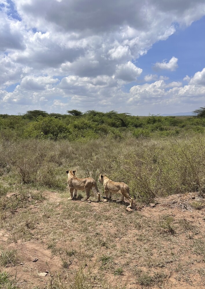 We saw hippos, zebras, giraffes, warthogs, impalas, antelopes, crocodiles, and lions. The absolute highlight, however, was seeing multiple rhinos with their babies. One mother was even breastfeeding her calf just a few meters from our car. The cherry on top was when Owen took a quiet road back toward the city, away from other vehicles, and spotted two beautiful lion cubs for us.
