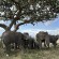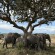 Not even half an hour later – and up until that point, vehicles with other safari tourists had been arriving every 10 minutes or so – a herd of elephants appeared. With a tiny baby elephant. The elephants neither saw nor smelled the lions in the tree and stopped right under the tree to take a break and eat the fruit.