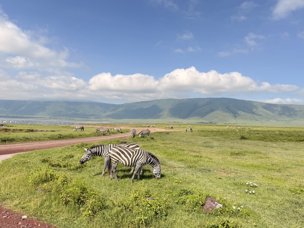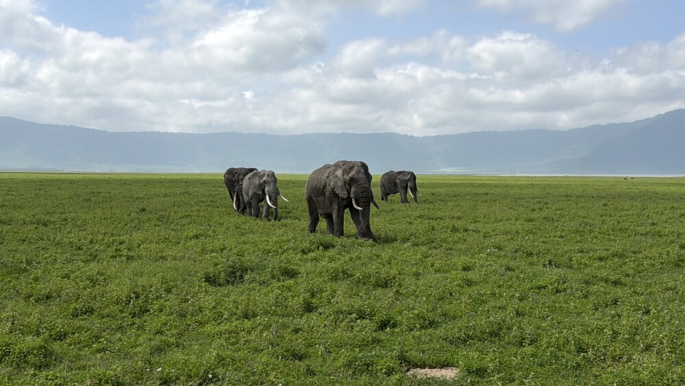 The next day we visited the Ngorongoro Crater. The scenery there is absolutely fascinating. We saw lions, many elephants, wild dogs, hippos and even rhinos from a distance. It was an unforgettable experience in the middle of nature.