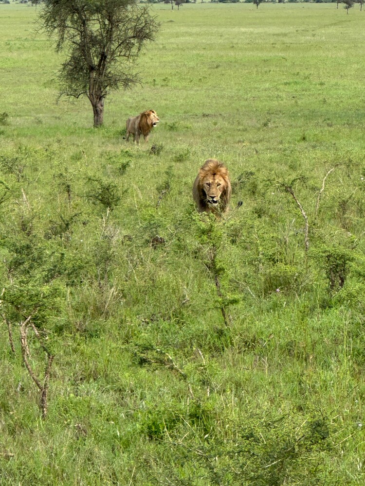 We caught the early coastal flight from Zanzibar and were met at the Arusha Airport by our guide Sule . Within 3hrs of entering Tarangire, we were literally surrounded by a herd of about 40 elephants. Watching them walk right past our Land Cruiser was surreal. The Baobab trees make the whole place look like a movie set. We spent the day tracking lions (found a pride napping under a sausage tree!) and buffalo around the river .