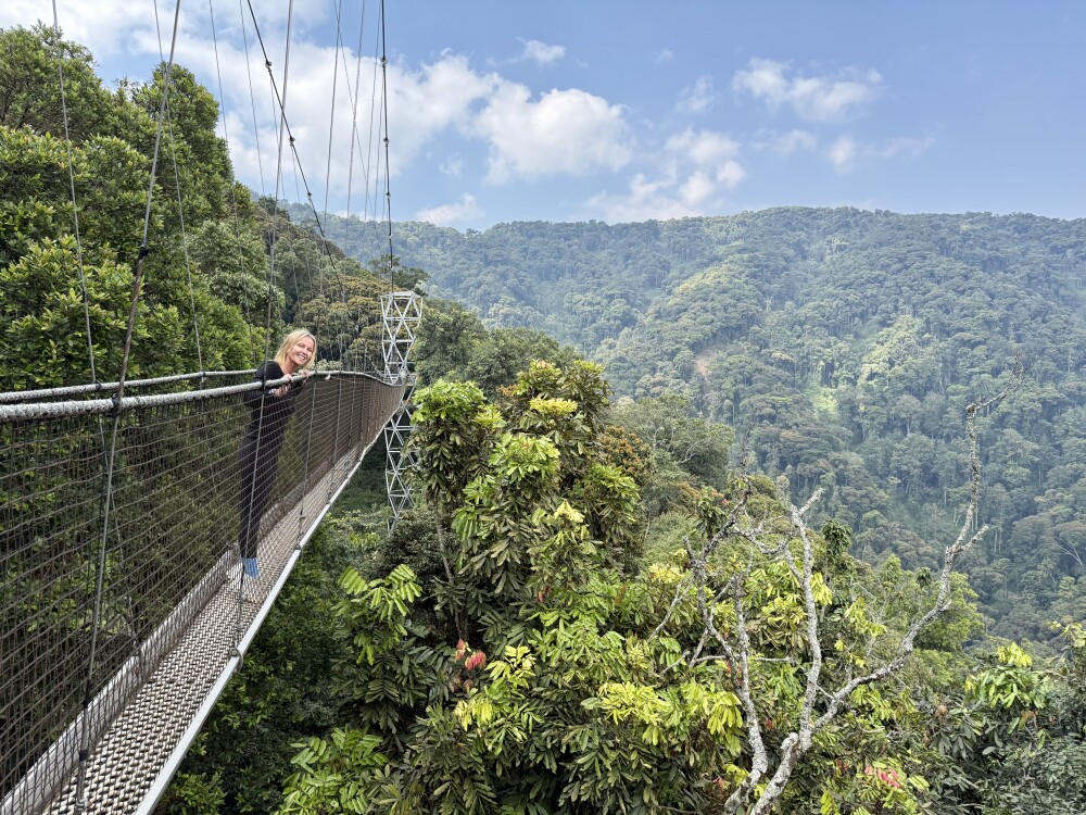 The bespoke itinerary included unforgettable adventures such as chimpanzee trekking & a canopy walk in Nyungwe, mountain gorilla trekking and the Dian Fossey hike in Volcanoes, and encountering the “Big 5” on Safari in Akagara.
