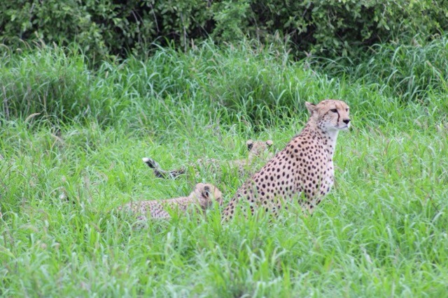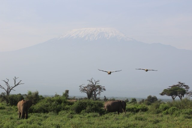 Despite the weather, the wildlife sightings were incredible. We saw 4 of the Big Five (elephants, lions, rhinos — both black and white — and Cape buffalo). One of our most memorable moments was watching a cheetah take down an impala while her three cubs waited nearby. Duncan positioned us perfectly so we could see the entire moment. On our last day in Amboseli we also saw elephants crossing with Mount Kilimanjaro in the background — an unforgettable view.
